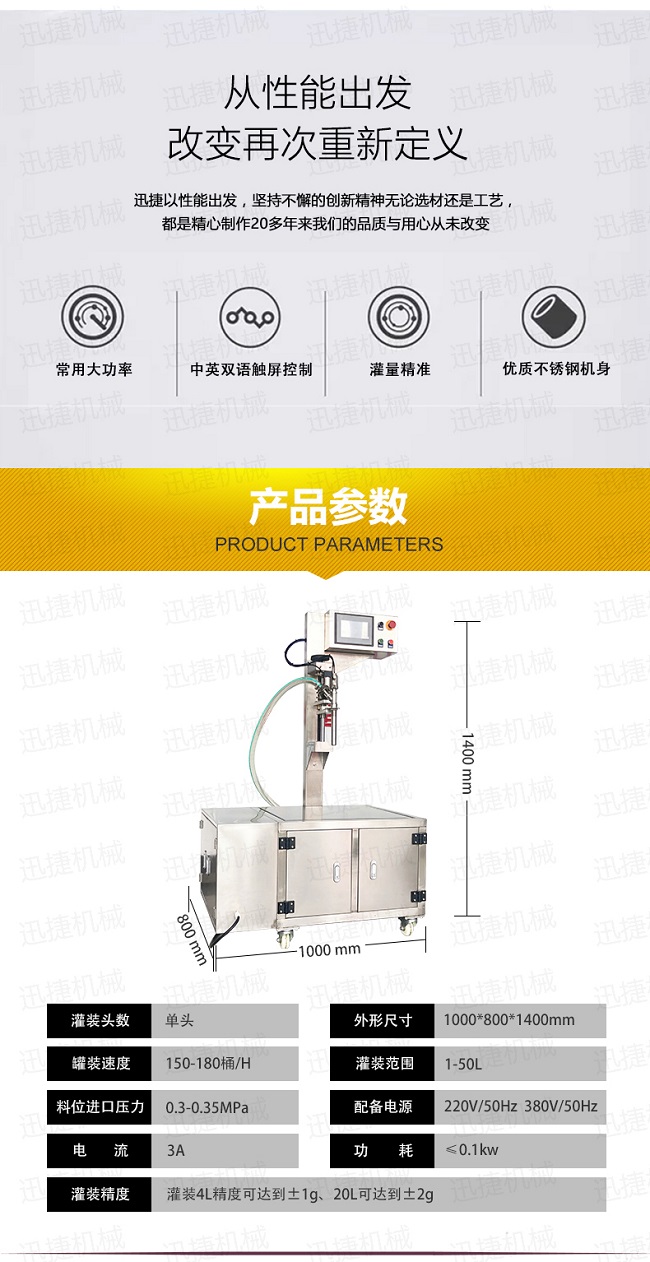 2.本設(shè)備罐裝精度精準(zhǔn),罐裝4L精度可達(dá)到±1g、20L可達(dá)到±2g。