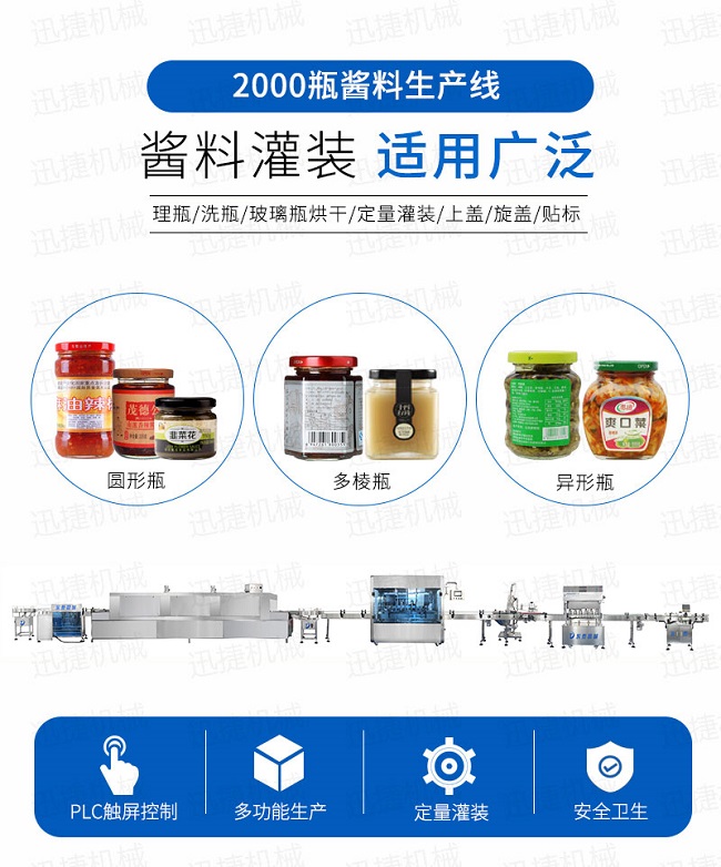 A、灌裝機在參考同類品的基礎上進行改良設設計,醬料防滴防漏灌裝頭在灌裝過程中不污染瓶口及瓶身,方便后續的旋蓋和貼標工序。